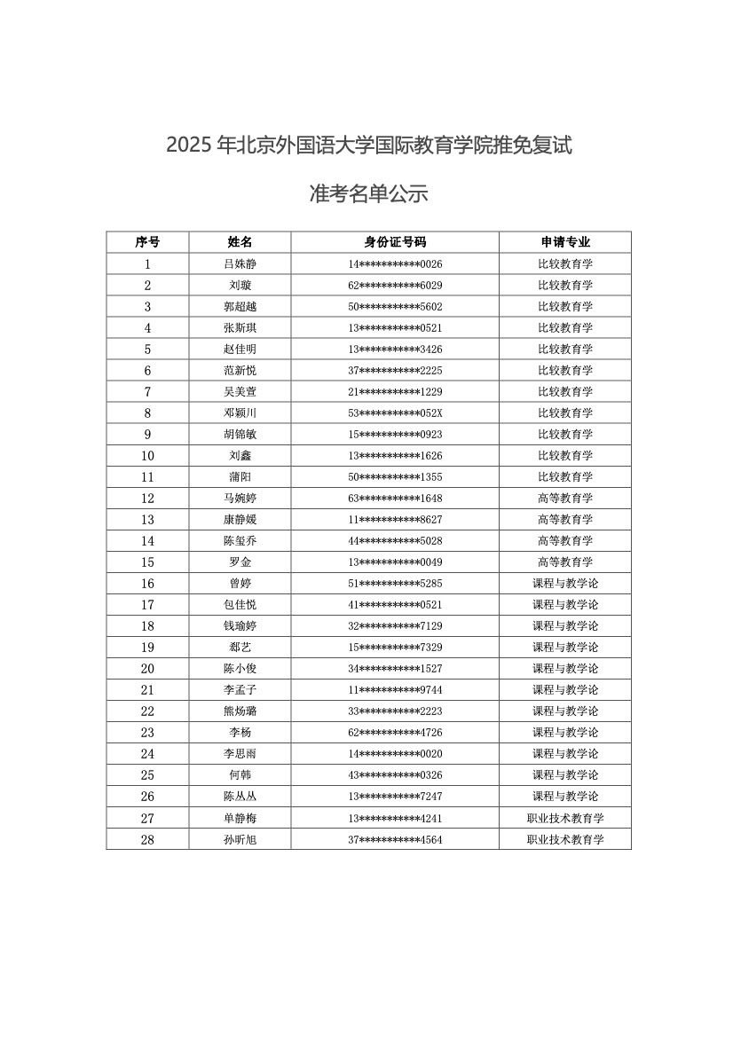 2025 年太阳官网国际tyc522cc太阳成集团推免复试准考名单公示