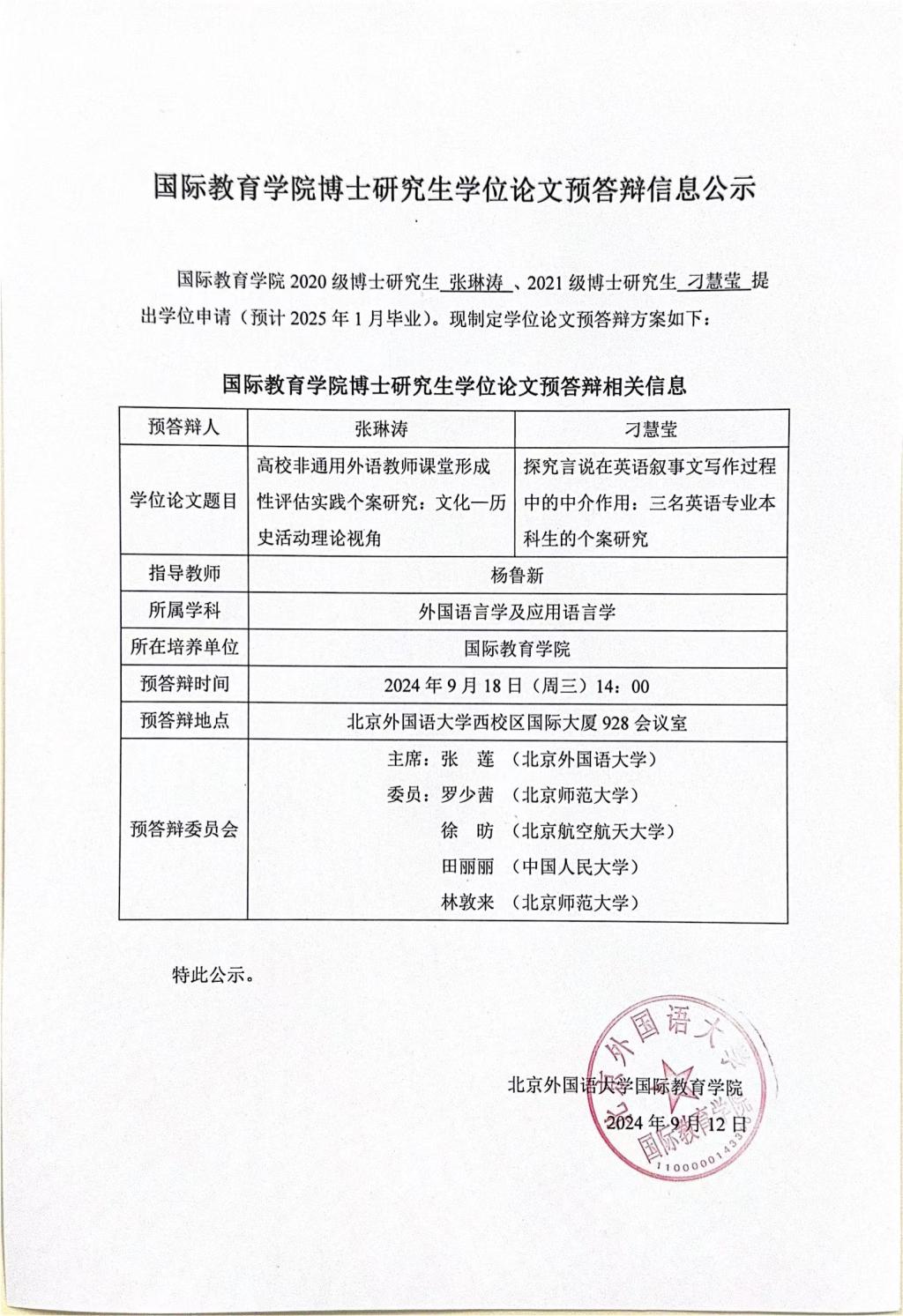 国际tyc522cc太阳成集团博士研究生学位论文预答辩信息公示