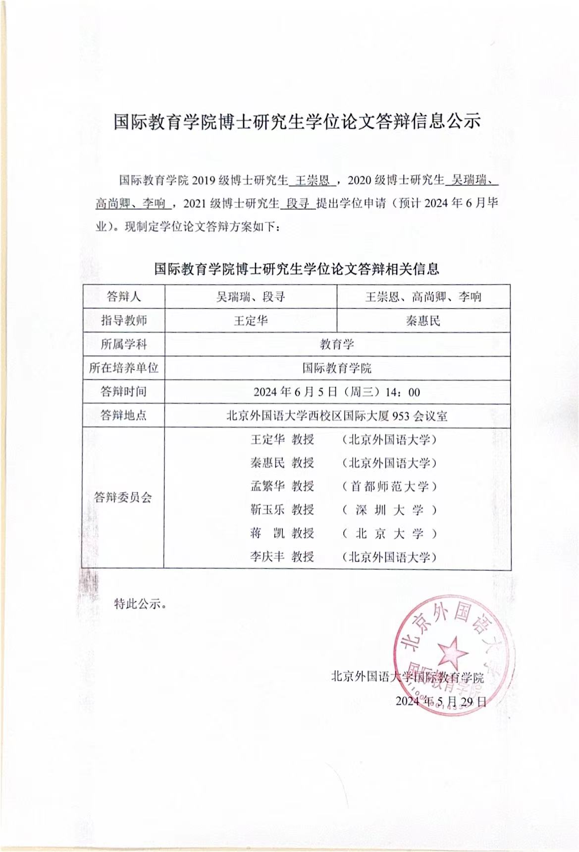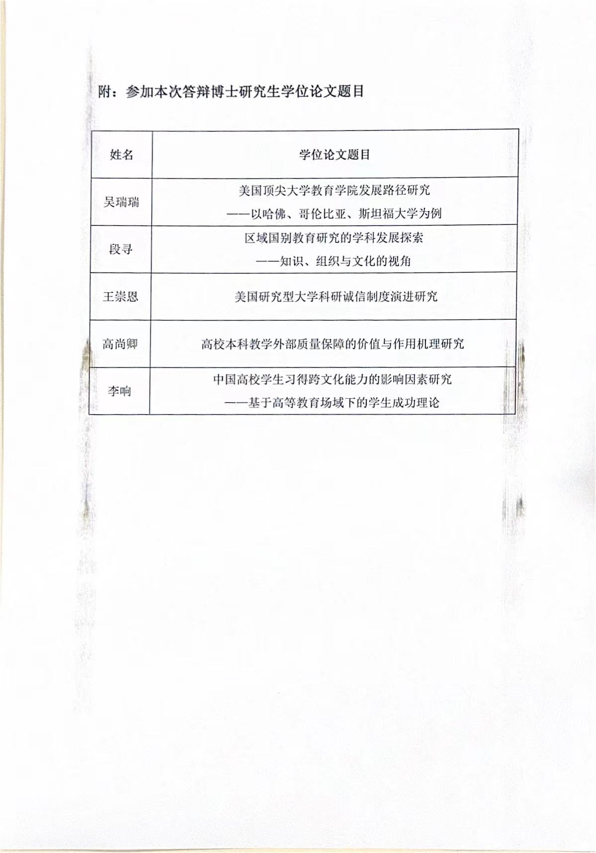 国际tyc522cc太阳成集团博士研究生学位论文答辩信息公示