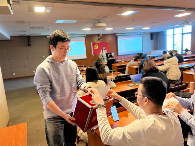 2021年12月29日下午,我院党支部在国际大厦417教室召开全体党员大会,研究讨论预备党员王文瑞同志的转正问题。党支部34名正式党员参会(有表决权的正式党员37人,请假3人),会议由支部书记王名扬主持。