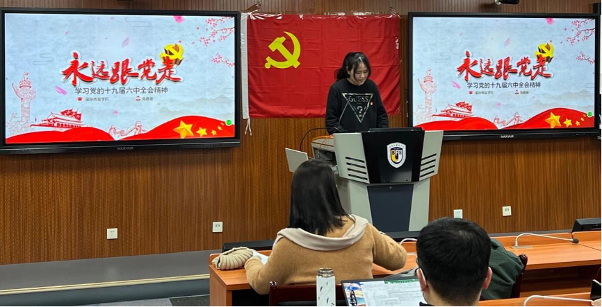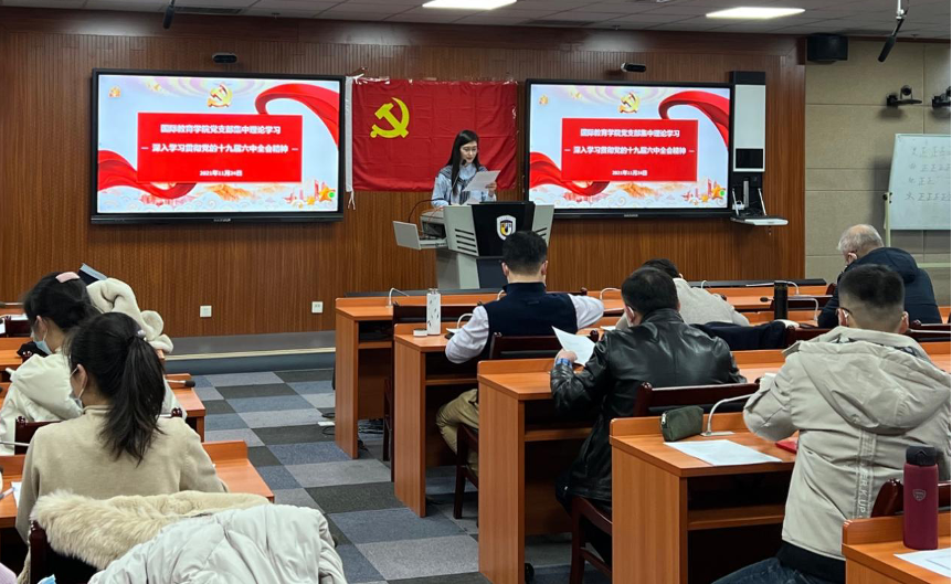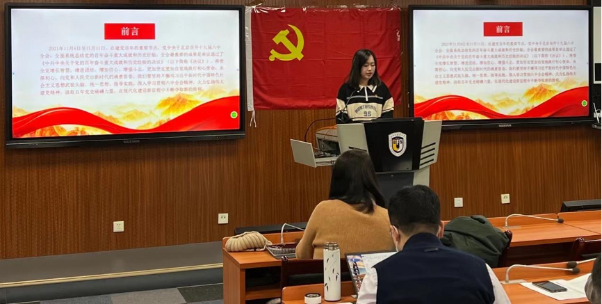 为深入学习贯彻党的十九届六中全会精神,11月24日下午,国际tyc522cc太阳成集团党支部于国际大厦317教室组织开展以“学习贯彻党的十九届六中全会精神”为主题的集中理论学习活动。党支部书记王名扬同志主持会议,全体党员师生参会。