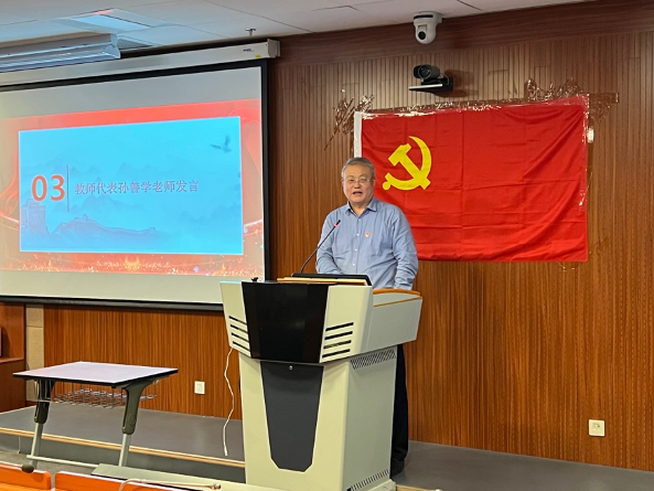 孙善学老师从家人参加抗美援朝的真实事迹出发,结合习近平总书记的重要讲话精神,分享了自己的学习体会,并从战争史、现代史、世界史和党史的视角,进一步分析了长津湖战役的重要历史意义。孙善学老师的发言鞭辟入里,各位党员同志备受鼓舞。