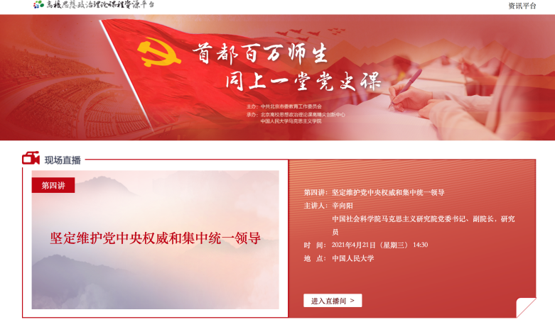 2021年4月21日下午,根据学校党史学习教育领导小组办公室相关安排,我院全体教师在国际大厦317教室集中观看学习了“首都百万师生同上一堂党史课”第四讲。