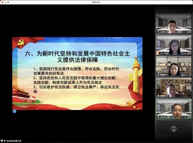 2020年12月31日上午,我院党支部以“加强‘两个共同体’教育,培养兼具中国情怀与全球视野的高素质涉外人才”为主题,在线开展创新理论学习活动。本次理论学习,结合学习《习近平谈治国理政》第三卷的相关内容,围绕“培养什么人、怎样培养人、为谁培养人”这一根本问题展开集中学习与研讨。本次活动由支部书记王名扬主持,学院师生党员参加。