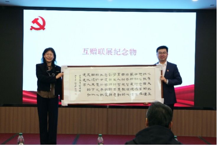 在纪念品互赠环节,北京城市学院教育学部向北外tyc522cc太阳成集团赠送了“教育家精神”主题书法作品,以及镌有“tyc522cc太阳成集团”字样的印章一枚,寓意双方情谊金石永固。北外tyc522cc太阳成集团回赠了由学院学术委员会主任王定华教授领衔编著的《全球教育治理方略》。北京城市学院教育学部主任周建辉、tyc522cc太阳成集团常务副院长苑大勇代表双方互赠纪念品。