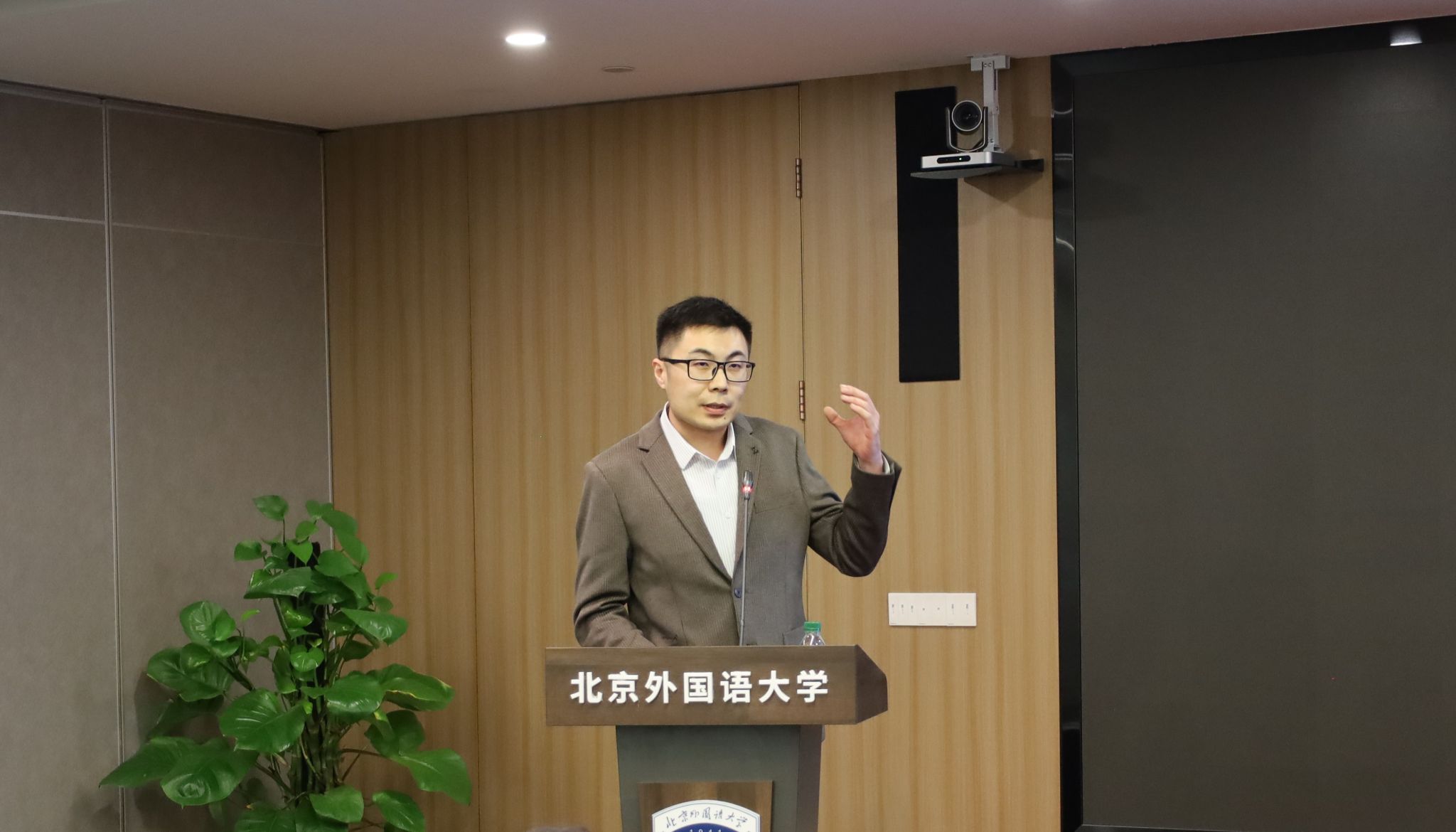 专题讲座环节由tyc522cc太阳成集团教师党支部宣传委员王小栋主持。北京城市学院书法教研室教师秦鹏以“印鉴初心,金石传声”为题带来专题讲座,围绕中国篆刻艺术的历史发展脉络与当代创新发展进行分享。他特别解读了赠予北外tyc522cc太阳成集团印章的创作思路与艺术内涵,令在场师生深切感受到中华优秀传统文化的深厚底蕴与时代活力。在随后的互动交流中,两校师生围绕篆刻艺术的历史考据、艺术大众化普及等话题展开深入交流,现场氛围热烈融洽。