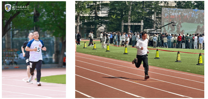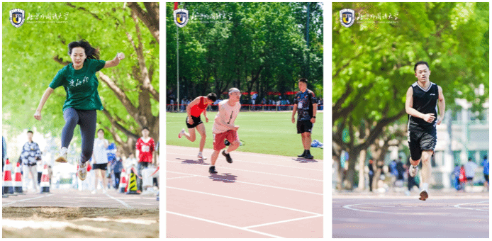 下午的赛程愈加激烈。教工男子组400米决赛、学生女子组跳远决赛,男子组200米决赛、400米决赛异彩纷呈,大家勇往直前、超越极限,展现出舍我其谁的豪迈气魄。我院教师在踢毽子和跳绳、飞盘九宫格、定点投篮等项目决赛中各展所长,默契配合,展现出良好的竞技状态和团队凝聚力。随后,最激动人心的教工组和学生女子组4×100米接力决赛,将现场气氛推向了高潮,队员们每一棒的交接都充满信任与期待,师生们在跑道上如箭离弦、奋勇争先,为学院的集体荣誉奋力拼搏。