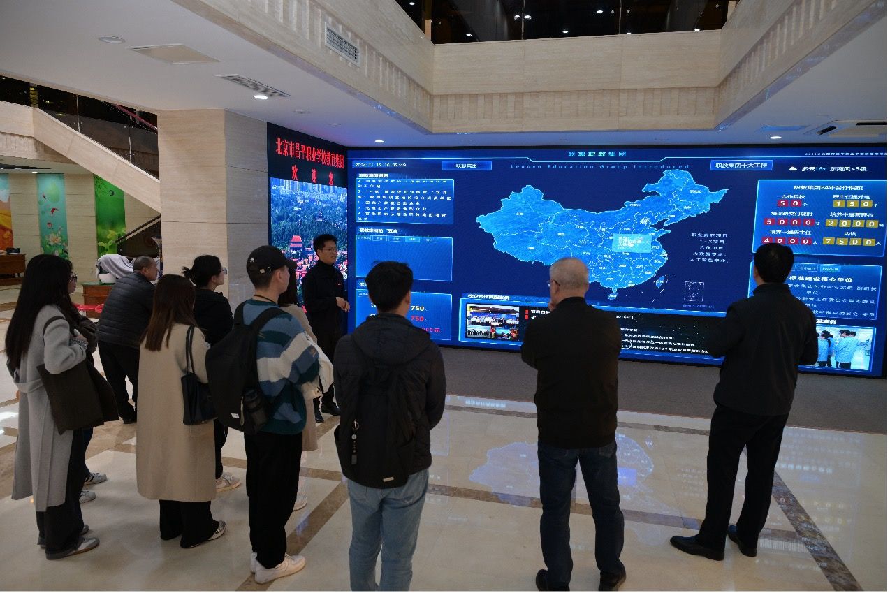 在段福生校长等校领导的陪同下,访问团师生参观了劳模工匠公园、科教产城融合实训中心、联想智能制造(虚拟仿真)实训基地等关键实训基地,全面了解了昌平职业学校在专业建设、产教融合、校企合作等方面的最新进展和实践成果。此外,师生一行还考察了膳食健康与餐厨数字研究中心、学校大数据中心、中德汽车教育文化交流中心、冰雪实训室、京东产教融合学院、曹继桐烘焙文化艺术学院以及劳木家工作室等,通过这些实训基地的参观,师生们对昌平职业学校的教育模式和办学特色有了更直观的认识。