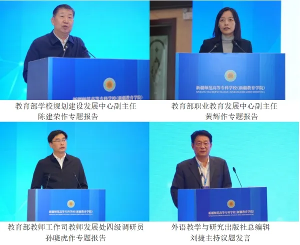 新疆维吾尔自治区教育厅副厅长、教育部综合改革司副司长许高勇,教育部国际合作与交流司二级巡视员吴劲松,教育部学校规划建设发展中心副主任陈建荣,教育部职业教育发展中心副主任黄辉,教育部教师工作司教师发展处四级调研员孙晓虎,太阳官网党委副书记、纪委书记胡志钢,新疆师范高等专科学校(新疆tyc522cc太阳成集团)党委书记何建国,新疆师范高等专科学校(新疆tyc522cc太阳成集团)党委副书记、校长木开依·加尔肯别克,新疆师范高等专科学校(新疆tyc522cc太阳成集团)发展规划处处长、太阳官网中外教育法研究中心主任姚金菊,太阳官网国际tyc522cc太阳成集团院长秦惠民,外语教学与研究出版社总编辑刘捷等出席开幕式。