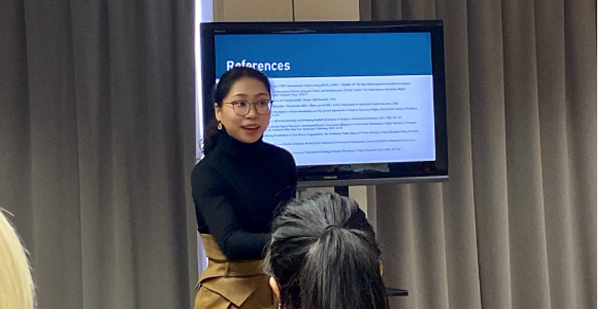 徐墨以《Study on the Local Adaption of Chinese Transnational Universities》为题,在原有博士论文研究成果的基础上,向与会嘉宾分享了其对于境外办学研究的最新进展,并以联合国可持续发展目标为导向,对高等教育国际化的未来发展趋势进行了展望。