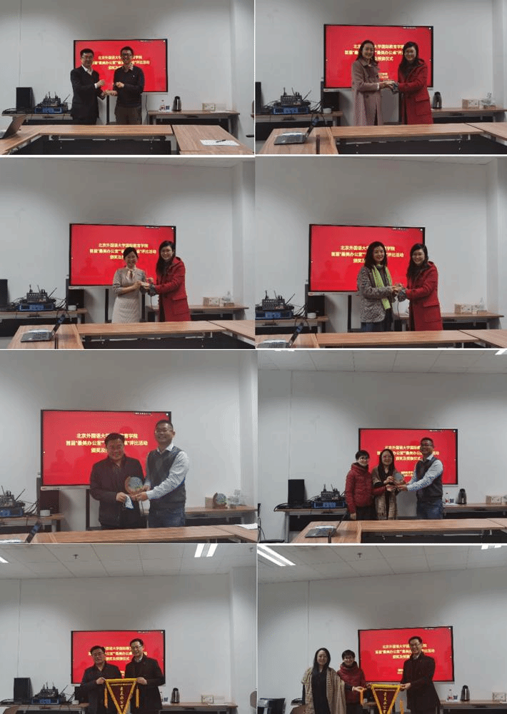 塑造美好环境,共建美好学院。为了引导全体教职工营造良好的工作环境,提升教职工的工作热情,彰显教职工的精神面貌,我院工会于10-11月举办首届“最美办公室”“最美办公桌”主题评比活动,得到教师们的积极响应和参与。经过综合评价和民主讨论,我院最终评选出“最美办公室”2 间、“最美办公桌” 3 个、“最佳创意奖”1个。在此基础上,我院推荐967 教师工作室参与我校首届“最美办公室”评选,获得太阳官网“最美办公室”荣誉。11月初,学院举行首届“最美办公室”“最美办公桌”评选活动的颁奖与授旗仪式。苑大勇副院长、王名扬副院长、祝军副书记为获奖教师颁发奖杯,学院工会主席李明为“最美办公室”获得者授予流动锦旗。