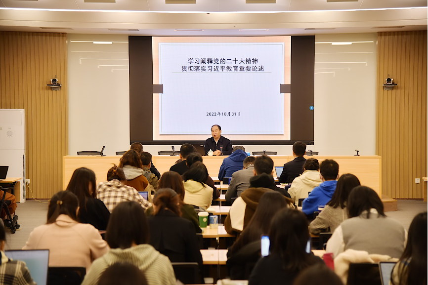 10月31日,学校党委书记、国际tyc522cc太阳成集团教授王定华为学院师生做了学习阐释党的二十大精神学习报告。本次讲座是学院党总支组织的深入学习贯彻党的二十大精神辅导讲座,讲座由党总支副书记祝军主持,学院全体教师和研究生聆听了报告。