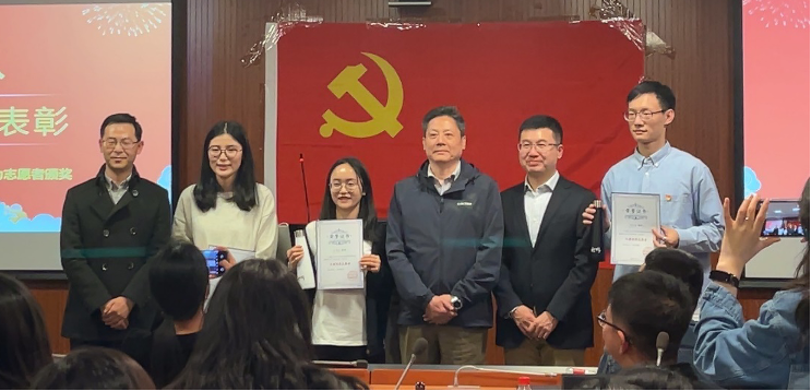 在分享和表彰环节,为弘扬冬奥精神,展现青年风采,三名顺利完成冬奥志愿服务工作的学生志愿者刘波林、万思嘉和陆茜茜同学依次上台分享了自己的冬奥经历与感悟,与会师生对志愿者同学无私的奉献及精彩的分享报以热烈掌声。学院领导宣读了学院的表彰决定,并对三位志愿者颁发了表彰证书。