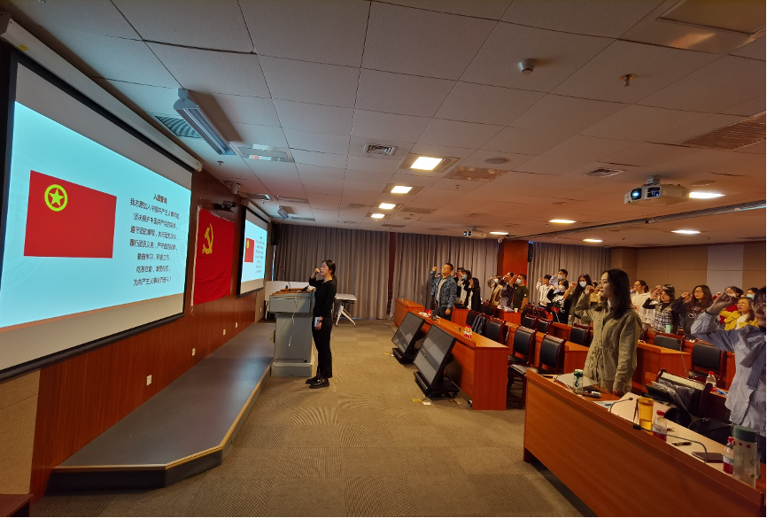 最后是主题团日活动,由团总支书记尤铮老师带领全体团员重温了入团誓词,学生大会在青春激昂的中国共产主义青年团团歌声中徐徐落下帷幕。
