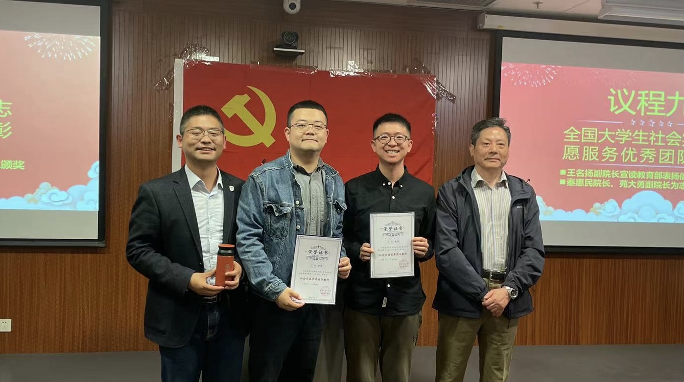 接下来,2021年全国大学生社会实践志愿服务优秀团队、学院国情教育社会实践团的同学们以视频和报告相结合的方式生动展示了团队的实践经历,指导教师代表巫锐老师以“扎根本土大地”与“世界性”的关联为主题,就该项目进行了分享和反思。学院领导宣读了教育部、团中央给予实践团队成员的表扬信,并为社会实践团师生颁发了表彰证书。