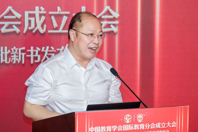 杨银付代表中国教育学会对国际教育分会的成立表示祝贺,他指出,国际教育分会的成立是众望所归,也恰逢其时。杨银付从组织开展学术研究、研制专业评价标准、促进教育交流合作、开展师资培训、讲好中国教育故事等方面分享了关于分会定位和发展思路的构想。他用“四个坚持、四个提升”对分会提出了希望和要求:第一,坚持政治建会,提升引领力;第二,坚持服务立会,提升贡献力;第三,坚持学术兴会,提升竞争力;第四,坚持科学治会,提升保障力。杨银付表示,希望大家在王定华理事长的带领下,不忘初心,牢记使命,精诚团结,为我国国际教育发展做出卓越的贡献。