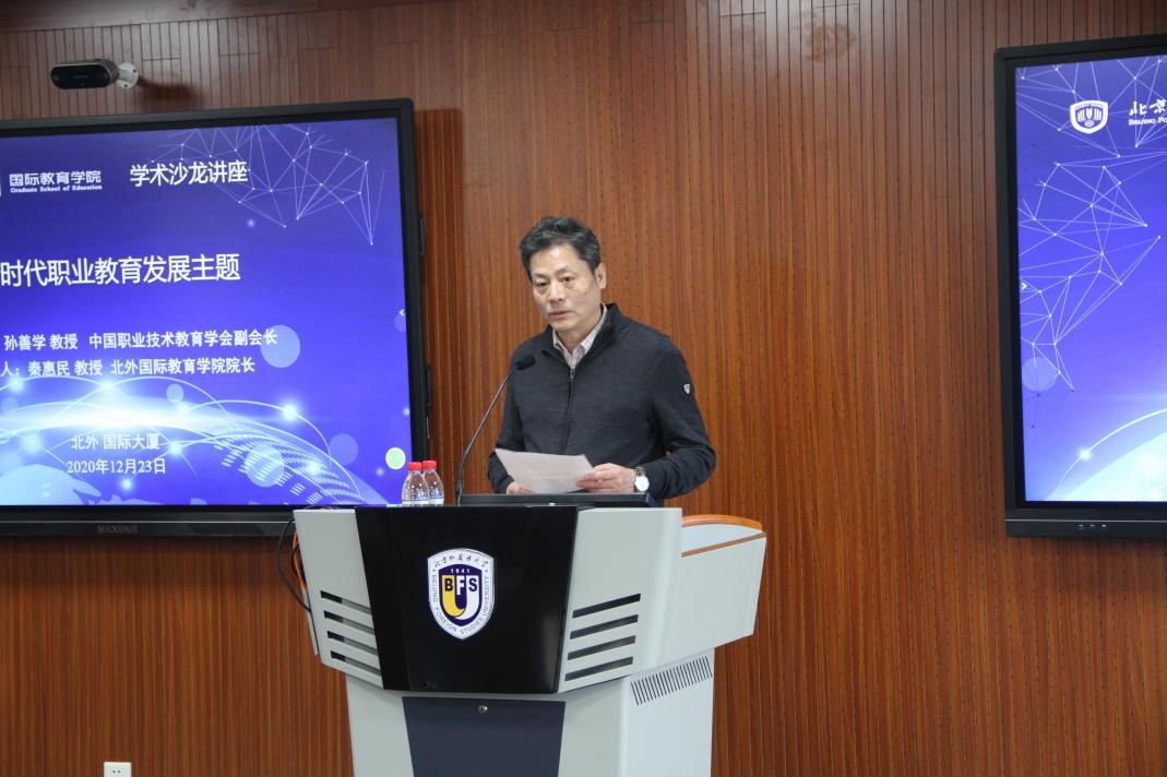 讲座由院长秦惠民教授主持。秦惠民院长介绍了孙善学教授的学术背景、学术研究状况和代表性学术成就,并就我院将以职业技术教育作为学院新的学科增长点的学科发展建设新思路做了介绍。