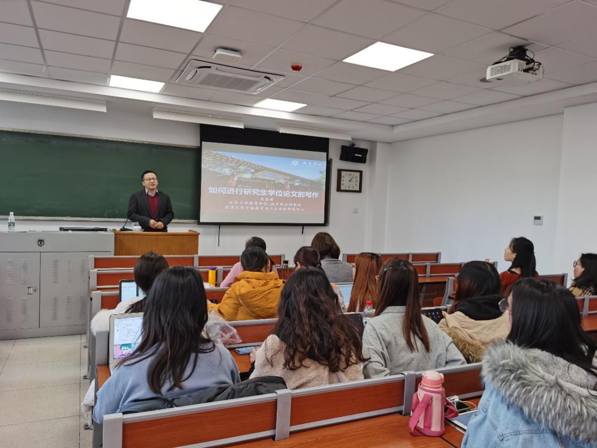 近日,北京大学教育经济研究所副所长、tyc522cc太阳成集团岳昌君教授应邀为我院研究生做了“如何进行研究生学位论文的写作”专题讲座。讲座由祝军老师主持,学院全体硕博研究生参加了本次活动。