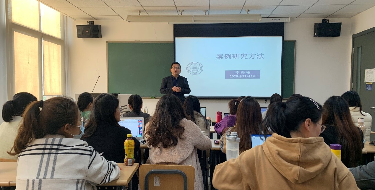 在讲座中,李秀峰教授从案例研究的概念入手,就案例研究的类型和定位、案例研究的规范化要求、案例研究的方式选择和资料分析手段等进行了介绍,并结合同学们提出的问题,对“什么样的研究是好的案例研究”进行了具体分析。