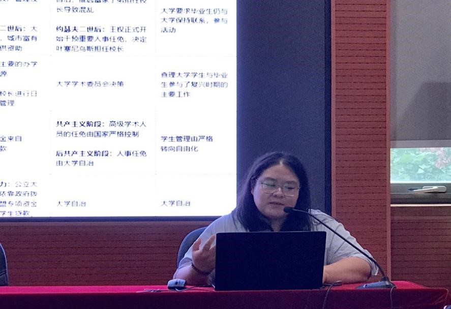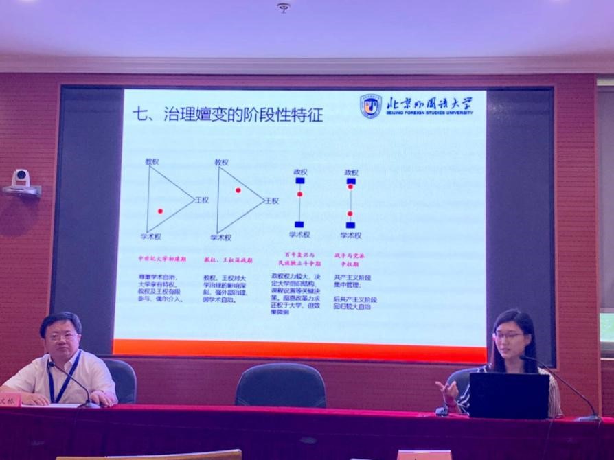 我院青年教师王名扬、博士生陈虹应邀出席学术年会,并在分论坛四“全球高等教育治理的理论与实践”做了题为《捷克高等教育治理嬗变历史研究——以查理大学为例》的学术报告。该报告基于2020年度太阳官网基本科研业务费自主选题重点课题“从传统到现代的嬗变:大学治理的欧陆模式研究”(项目编号:2020JJ008)的阶段性研究成果,围绕不同历史时期大学内外部利益相关者参与大学重大事务决策的结构和过程进行了讨论,归纳了五个历史时期治理事项的权力分布和治理嬗变的阶段性特征,并就相关内容与国内同行学者进行了深入交流和讨论。
