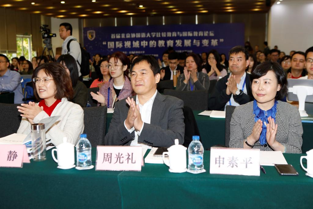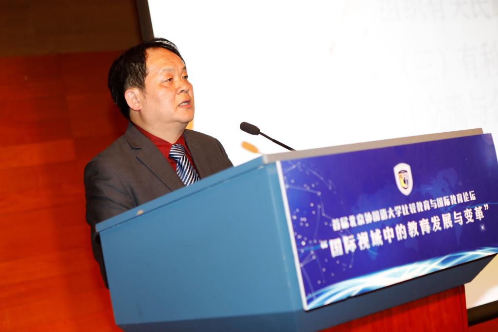 我校党委书记王定华、副校长贾德忠、国际交流处处长柯静、党委宣传部常务副部长刘生全等出席论坛。