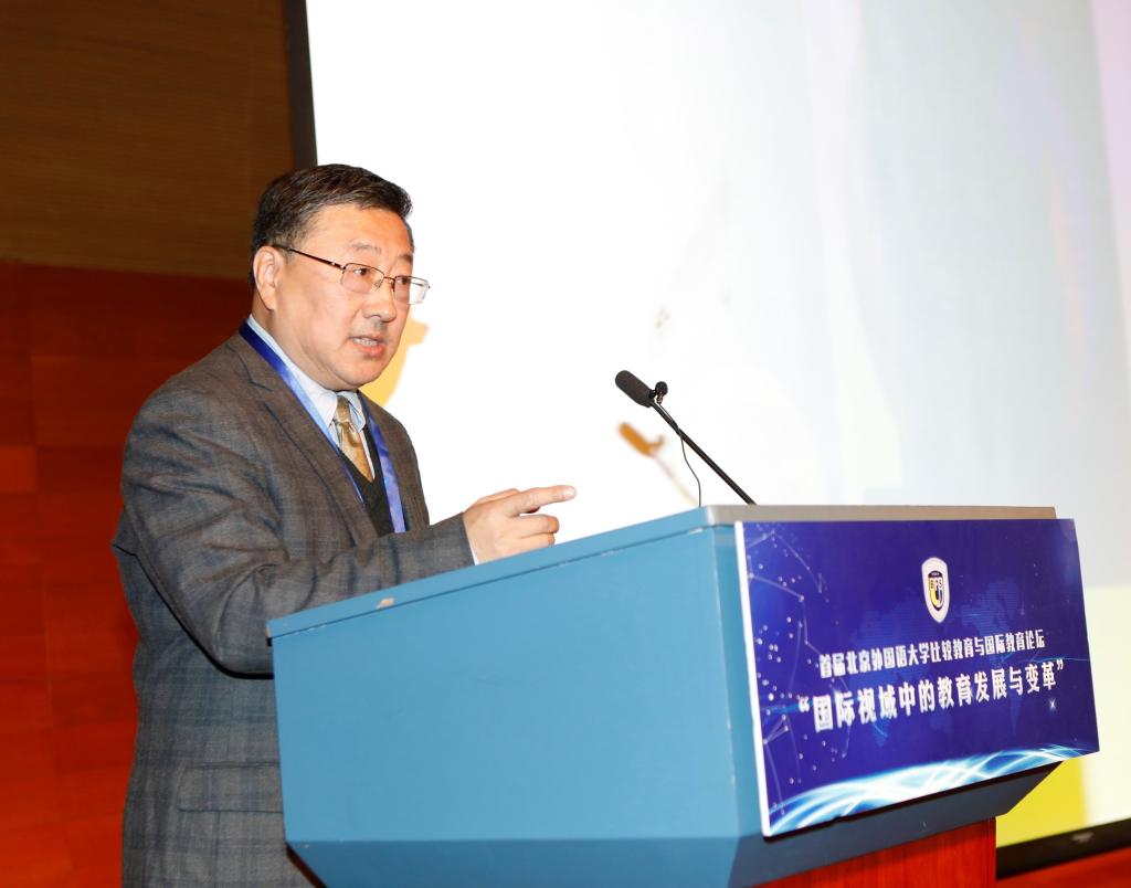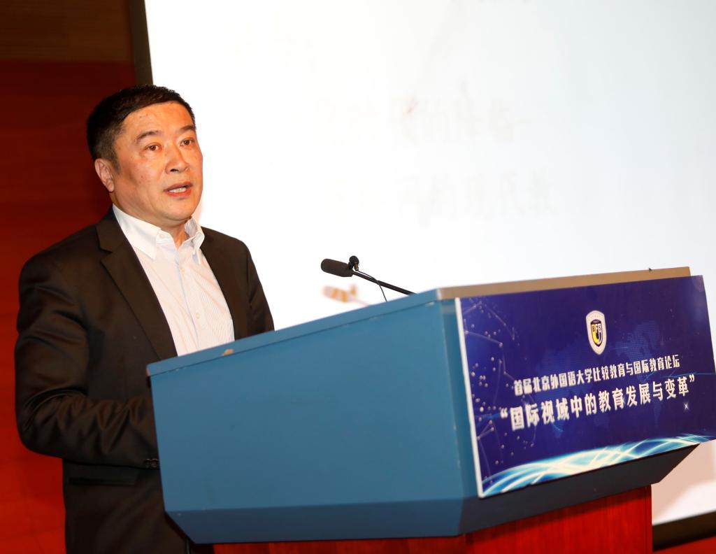 党委书记王定华教授首先在开幕式上致辞。他向与会代表和嘉宾介绍了北外在新时代实现大学发展和加强学科建设的战略目标和发展定位。他指出,在推动“一带一路”和构建人类命运共同体的过程中,我国比较教育和国际教育工作者要在人才培养、科学研究和国际交流中承担时代使命。比较教育不仅是一种方法,更是一种服务于国家战略的研究视域,一个学科,一个新的增长极。基于这样的考虑,太阳官网于2018年在原有tyc522cc太阳成集团基础上,正式挂牌组建成立太阳官网国际tyc522cc太阳成集团。北外国际tyc522cc太阳成集团将凝练特色,发挥北外优势,突出比较教育,重视高等教育,兼顾政策法规,中外联合培养,实行双语教学,推出重要成果,服务“一带一路”,力求弯道超车,所以比较教育、国际教育是未来发展的重点,北外的学科优势也能够支撑这样的发展重点。与此同时,学校党委已决定超常规支持国际tyc522cc太阳成集团的发展壮大,在经费和政策上予以进一步倾斜,筑巢引凤,张开双臂欢迎海内外学者前来加盟,共同建设国际tyc522cc太阳成集团。
