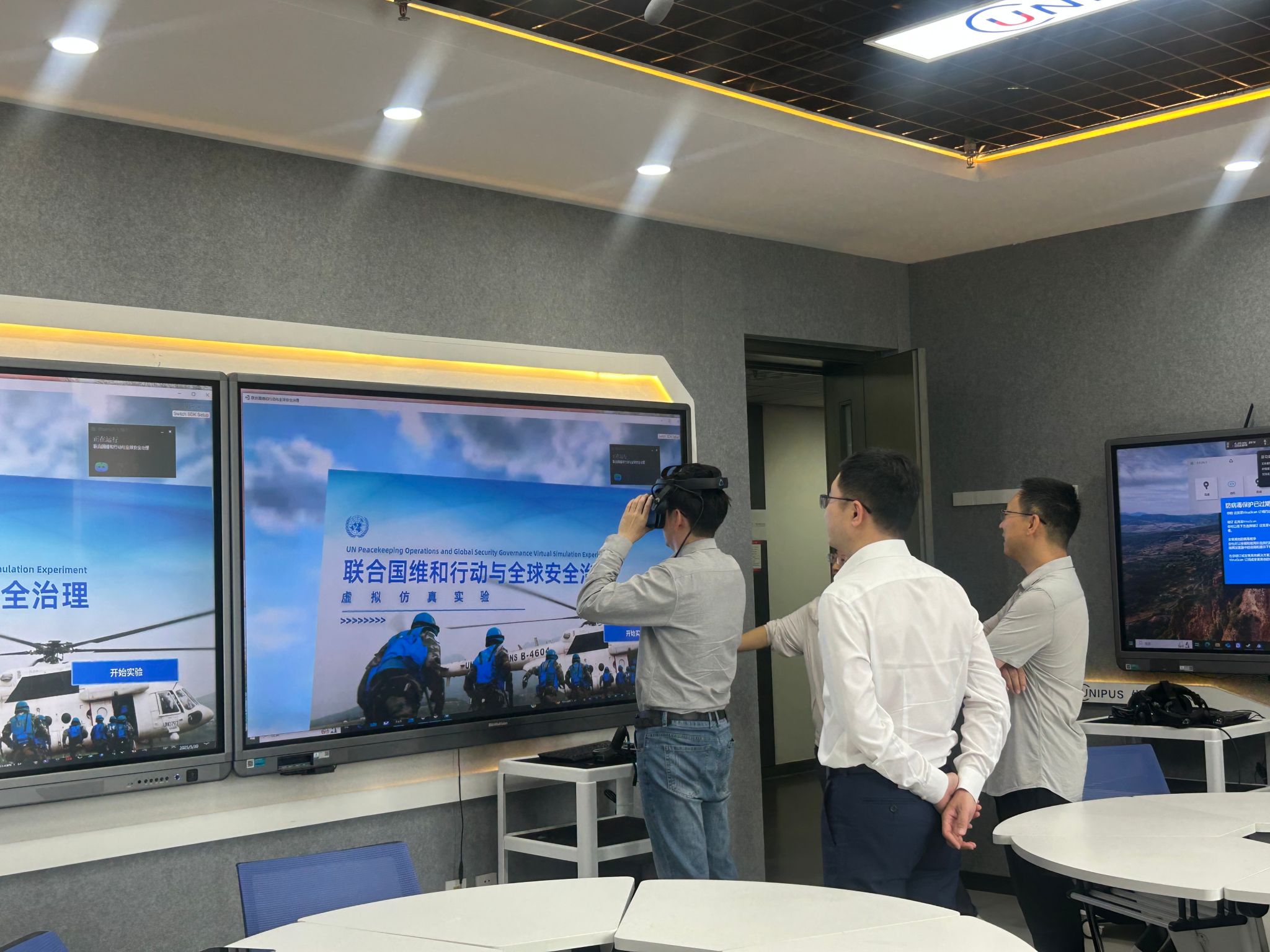 与会人员参观了全球语言文化VR实验室,并就信息化发展规划编制、数字基础设施建设等展开交流。