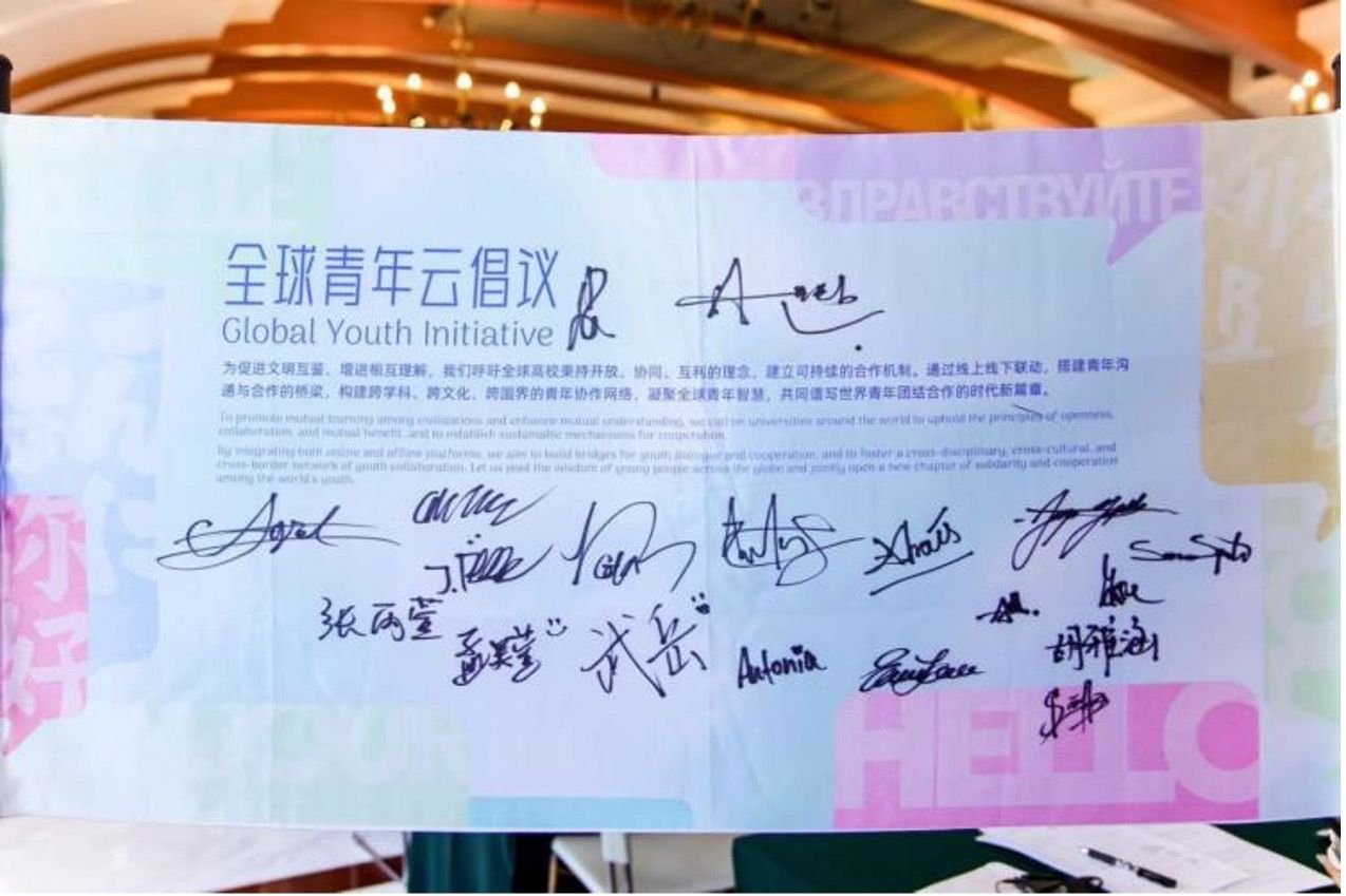 青年代表与各方嘉宾在“全球青年云倡议”上签名,共同呼吁全球高校秉持开放、协同、互利的理念,建立可持续的合作机制。通过线上线下联动,搭建青年沟通与合作的桥梁,构建跨学科、跨文化、跨国界的青年协作网络,凝聚全球青年智慧,共同谱写世界青年团结合作的时代新篇章。