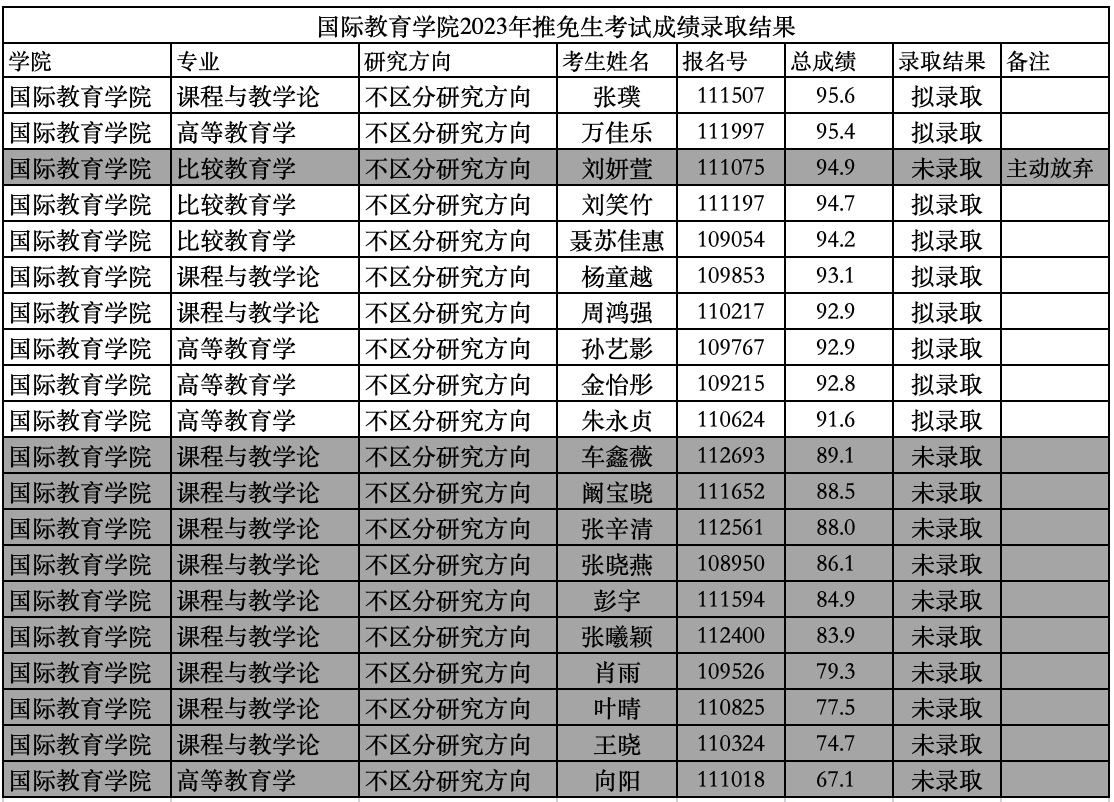 国际tyc522cc太阳成集团2023年推免生考试成绩录取结果