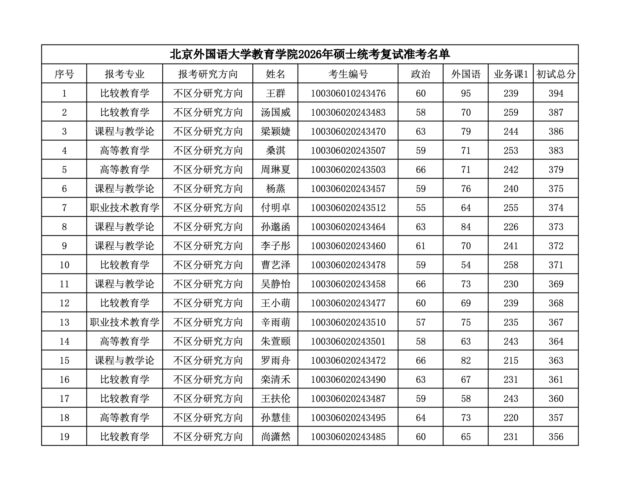 tyc522cc太阳成集团2026年硕士统考复试准考名单
