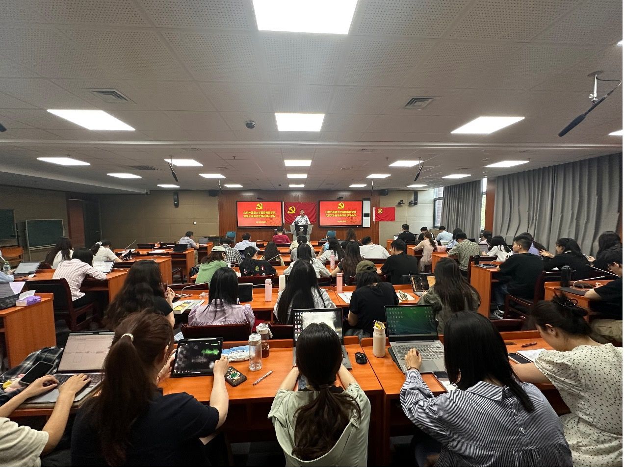 与会师生首先集中观看学习了警示教育片,了解党员违纪典型案例。随后,教师党支部书记涂端午、学生党支部书记尤铮先后围绕《中国共产党纪律处分条例》进行导学。涂端午阐释了纪律学习实践中他律和自律的辩证关系,并指出党员应切实增强学习的自觉性和坚定性,用切实行动来践行《条例》的要求。尤铮介绍了《条例》修订的主要情况、重要意义,以及在学习中强化理论联系实际等主要思考。