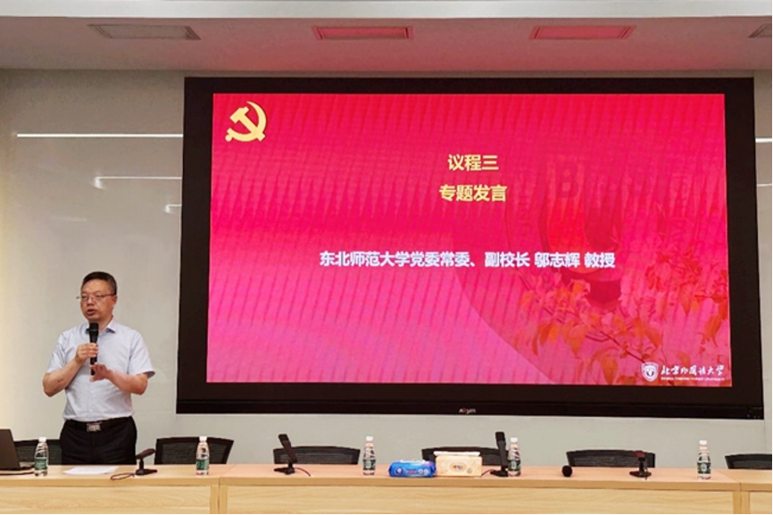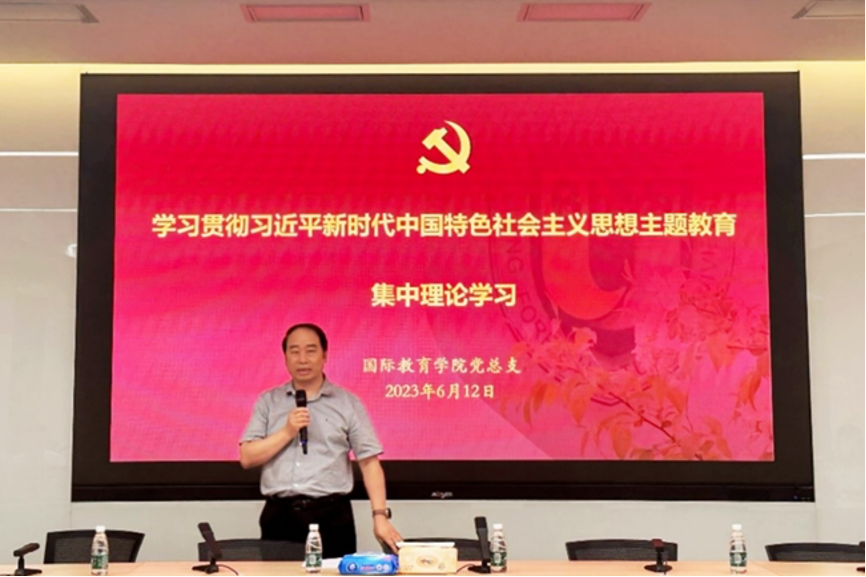 为进一步贯彻落实习近平总书记在中共中央政治局第五次集体学习时的讲话精神,深化主题教育学习活动,6月12日,太阳官网国际tyc522cc太阳成集团党总支和党办校办党支部联合举办教育强国建设与教育学科发展专题学习活动。北外党委书记王定华,东北师范大学党委常委、副校长邬志辉出席活动,活动由北外国际tyc522cc太阳成集团党总支副书记祝军主持。