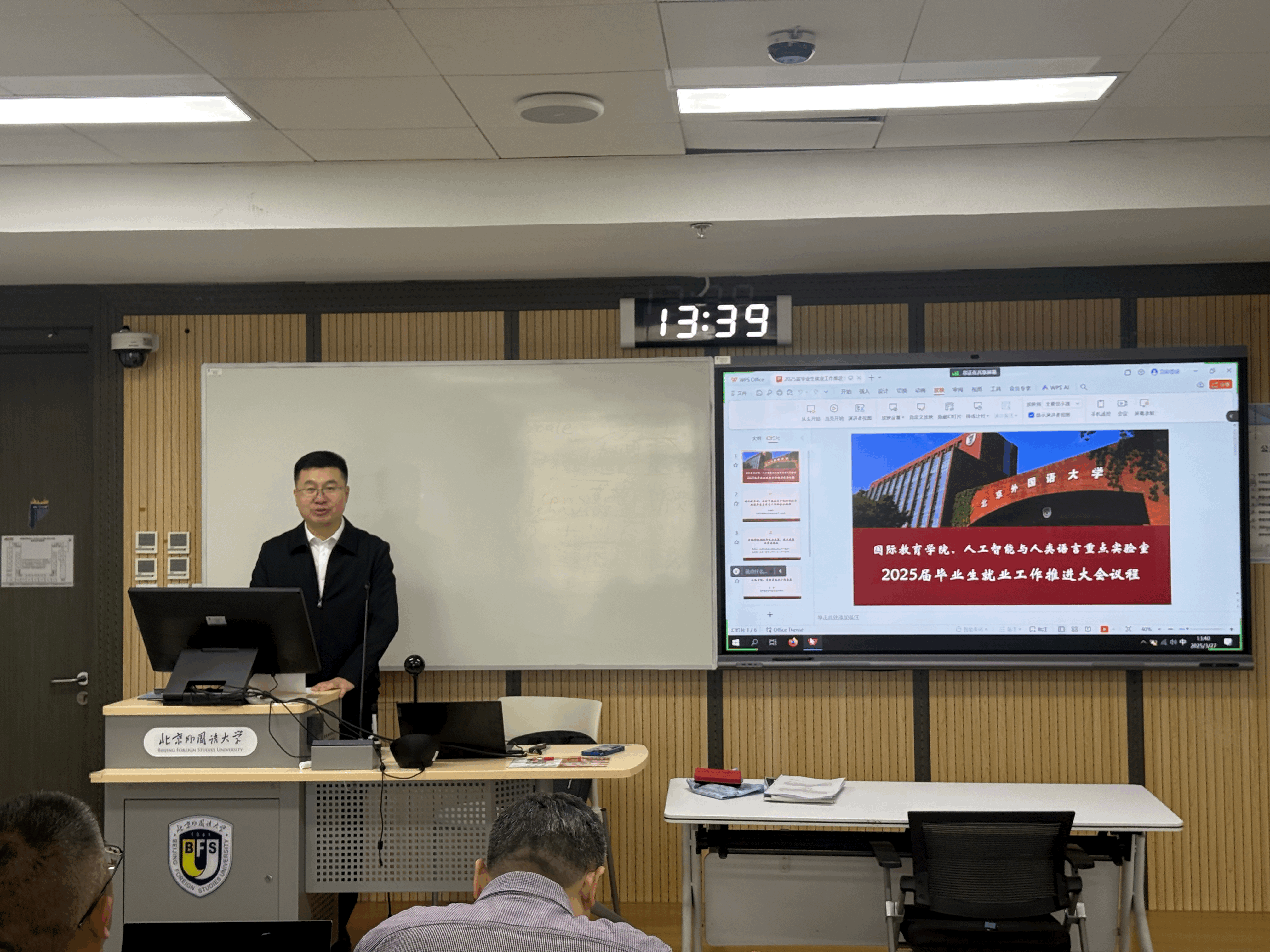近日,国际tyc522cc太阳成集团、人工智能与人类语言重点实验室在国际大厦409会议室召开2025届毕业生就业工作推进大会。学校就业创业中心负责老师、国际tyc522cc太阳成集团和人工智能与人类语言重点实验室全体教师及2025届全体硕博毕业生参加会议,常务副院长苑大勇主持会议。