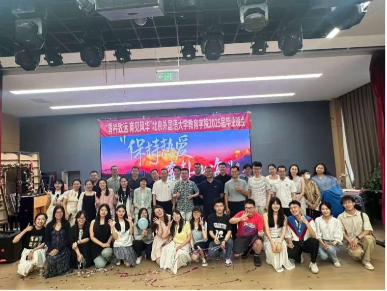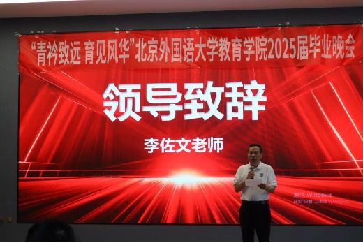 晚会伊始,tyc522cc太阳成集团李佐文老师发表了热情洋溢的致辞。(图片1)他深情回顾了同学们在北外的求学时光,肯定了大家的成长与收获,并寄语毕业生们秉持“青衿致远”的精神,胸怀家国,志存高远,在未来的人生道路上不断追求卓越,书写新的华章。随后的节目精彩纷呈,尽显教院师生风采。师生们联袂献艺,歌曲演唱《带我去找夜生活》、《有一点动心》、《Yellow》、《终身美丽》、《如约而至》、《去吧》、《Can’t Take My Eyes Off You》、《让她降落》等曲目轮番上演,或深情款款,或活力四射。德语学院张璞、张淡然同学带来的小提琴独奏《金色的炉台》旋律悠扬,李明老师的诗歌朗诵饱含哲理。趣味横生的“幸运数字”和“线索猜谜”游戏环节,以及人工智能与人类语言重点实验室老师们带来的神秘节目,更点燃了现场欢乐的气氛。