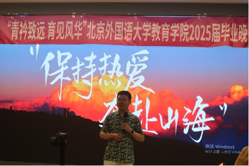 晚会临近尾声,苑大勇老师代表学院为全体毕业生送上真挚的毕业寄语。他勉励大家保持对教育的热爱与初心,勇敢追梦,并常回母校看看。