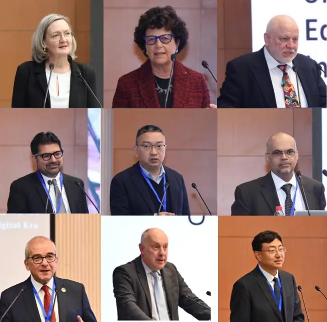 在专题研讨环节,沙特阿拉伯教育评估培训委员会评估、评价与认证研究中心首席执行官、原沙特阿拉伯教育部副部长纳亚夫·阿尔贾布里教授,德国国家工程院院士葛兴福,英国思克莱德大学副校长詹姆斯·道格拉斯·布罗迪,山东大学校长助理邢占军,来自阿根廷、澳大利亚、巴西、加拿大、印度尼西亚、韩国、俄罗斯、土耳其、美国等国家教育行政部门、研究机构和知名大学的代表,以及中国国家教育行政学院、国家开放大学、教育部教育技术与资源发展中心、北京大学、清华大学、重庆大学、科大讯飞的专家学者围绕“技术赋能学习,助力包容优质教育”“面向可持续未来的学习之路”“数字化转型中的跨界合作”“教育促进高质量发展”进行了专题发言和开放讨论。中国、澳大利亚、墨西哥、美国、印度尼西亚的专家学者对上述报告和研讨的内容要点进行了总结发言。
