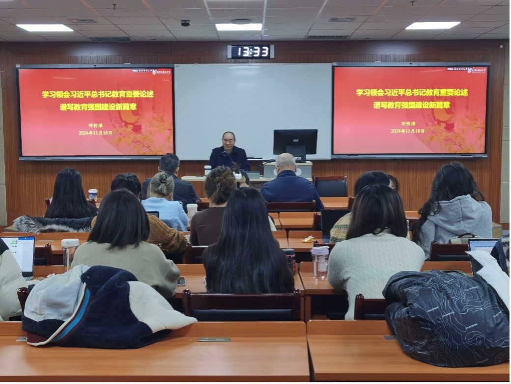 讲座中,邓传淮主任结合习近平总书记在全国教育大会上的重要讲话精神和自身学习体会,对“习近平总书记关于教育重要论述”有关内容进行了讲解和阐述。