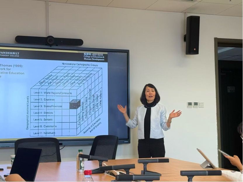2025年9月19日上午,美国范德堡大学皮博迪教育与人类发展学院Xiu Chen Cravens教授应邀做客tyc522cc太阳成集团,以“跨越世界的桥梁:中美教育研究对话”为主题开展学术讲座,聚焦中美教育研究对话,探索跨文化教育合作新路径。讲座由tyc522cc太阳成集团教师徐墨主持,学院师生积极参与。